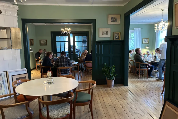 Bij ons kun je lunchen en dineren wanneer je dit minimaal één dag van tevoren boekt. Voor fika (koffie met iets lekkers) kun je altijd zonder reservering langskomen. We hebben nog geen à la carte-menu: de chef bepaalt het menu van de dag. Natuurlijk houden we graag rekening met allergieën en persoonlijke voorkeuren.